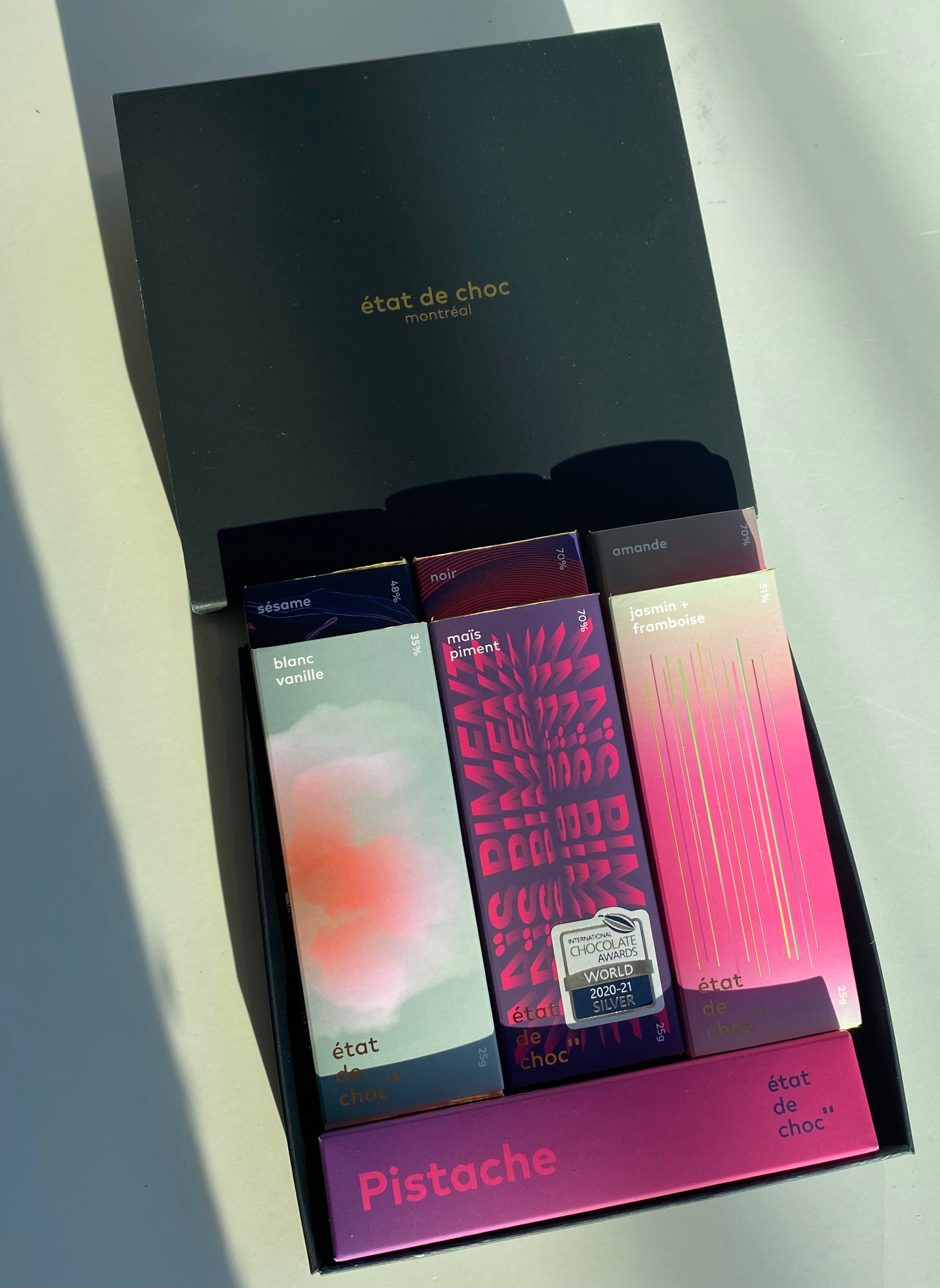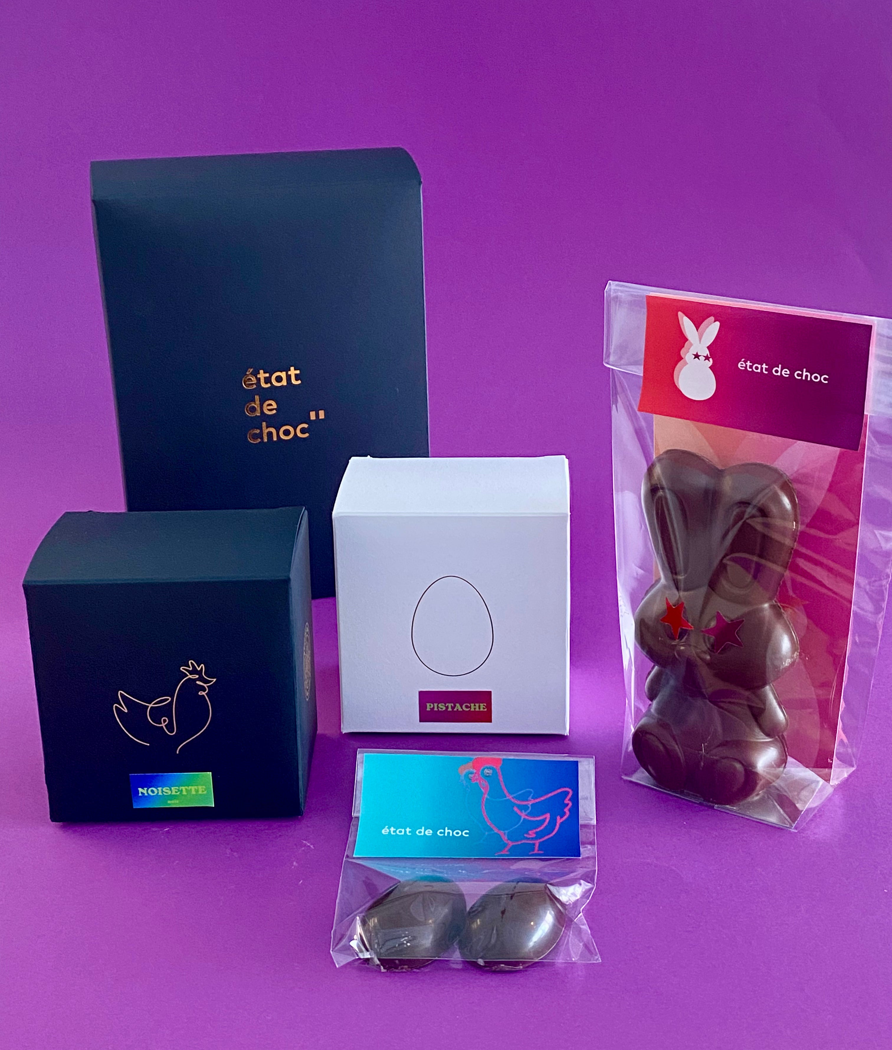 État de Choc est une chocolaterie exclusivement dédiée au chocolat« bean-to-bar ; autant dans ses créations que dans la sélection de chocolats proposés en boutique. "En tant que chocolatiers, nous
