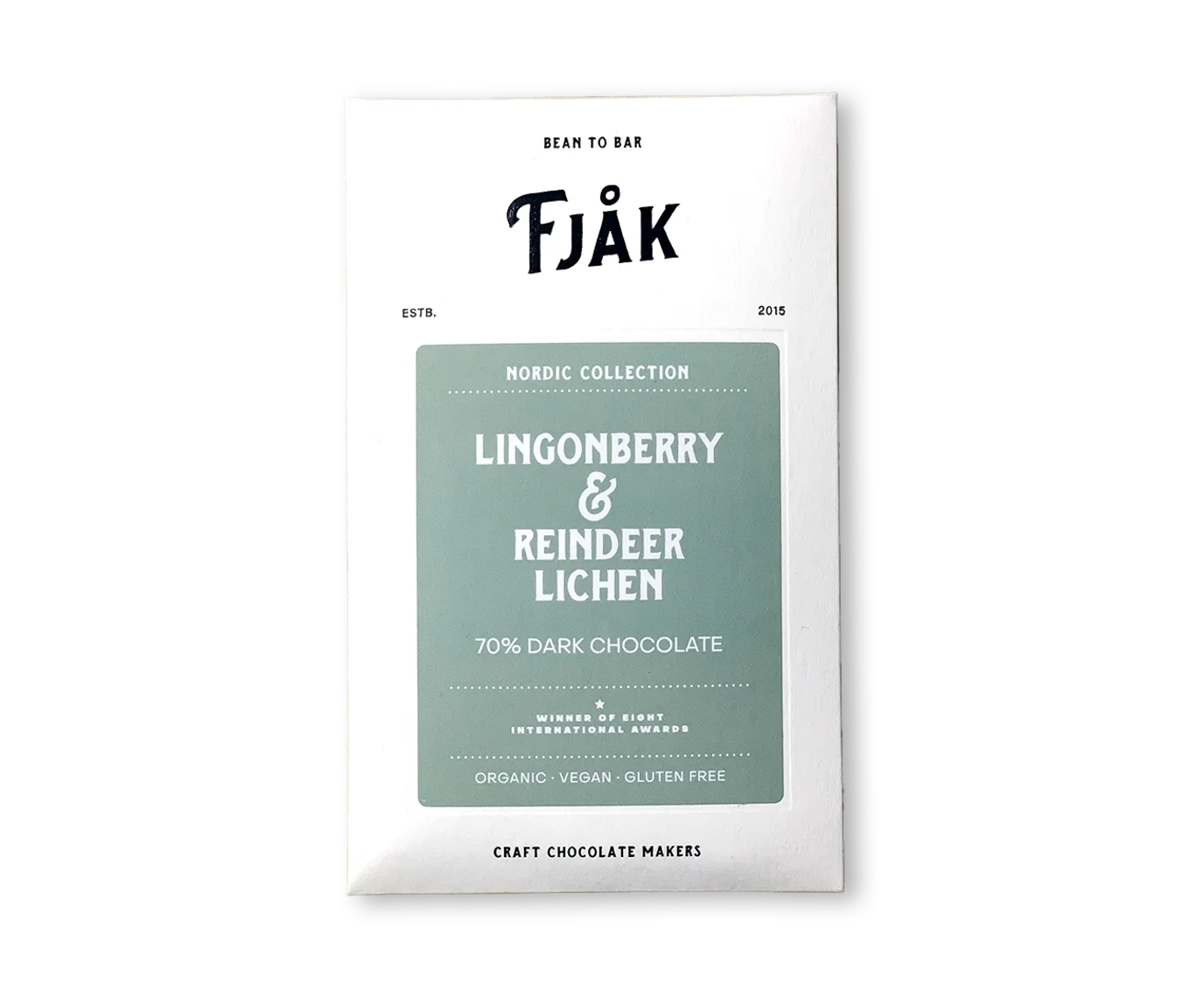 Fjak Dark Chocolate 70% & Red Cranberry & Reindeer Moss