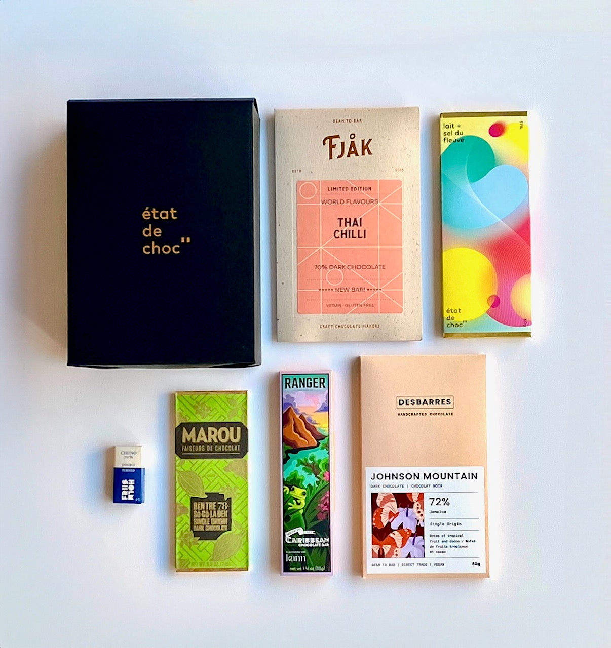 - Five chocolate bars made by manufacturers from around the world, using beans from different origins.