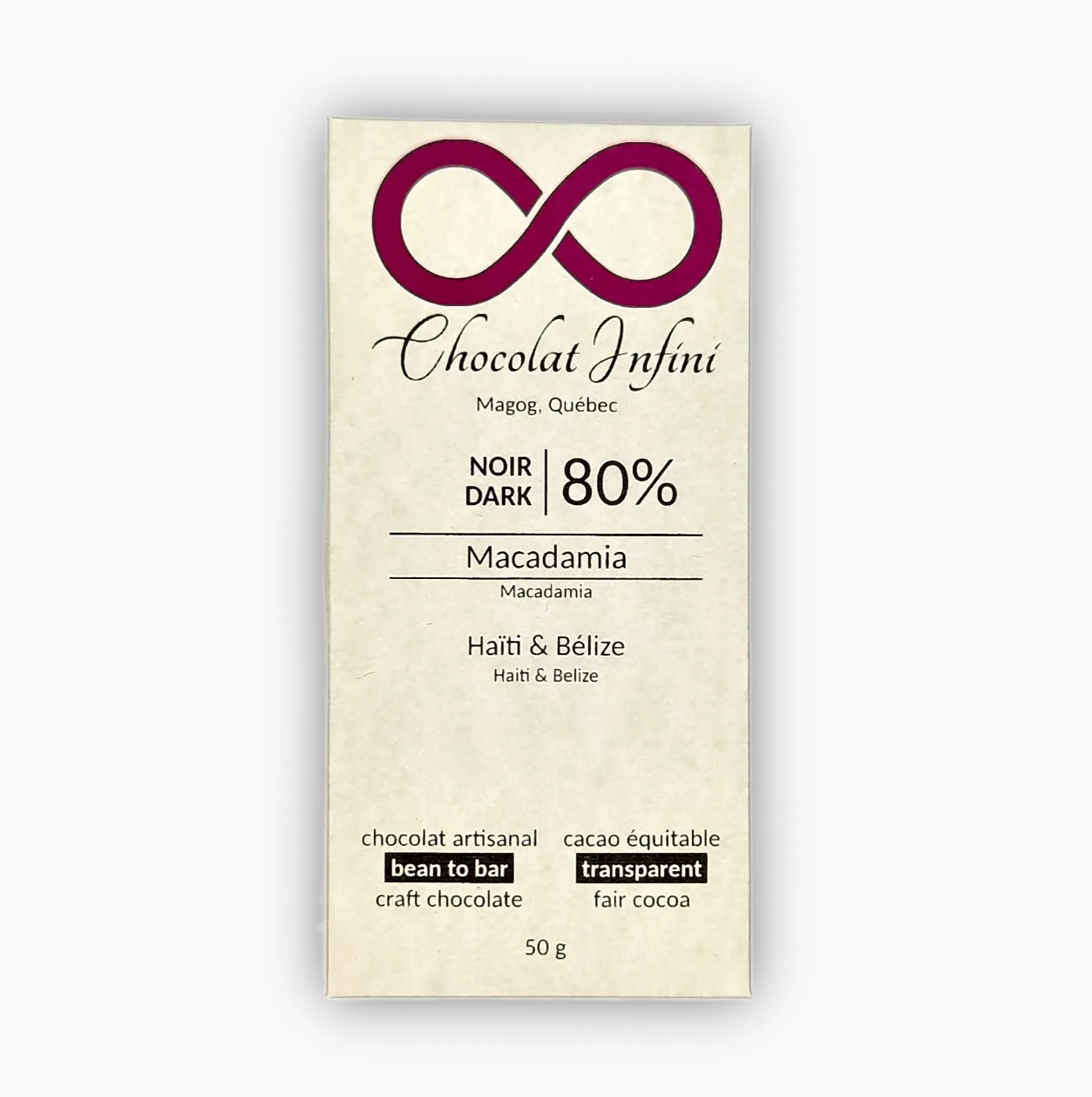 Infinite Chocolate - 80% Dark Chocolate + Macadamia Pieces