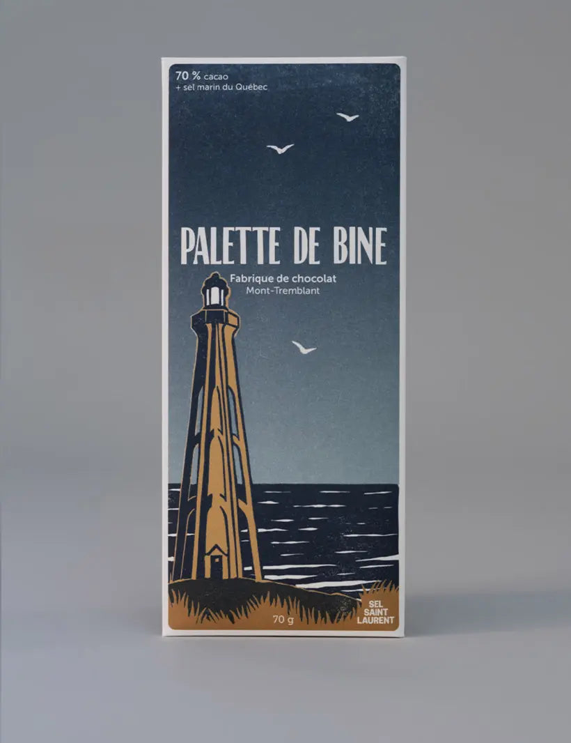 "Palette de Bine chocolate is produced in small quantities with a strong respect for the quality of our essential ingredient, the cocoa bean. We offer you beans selected from independent producers around the world. Our cocoa is roasted, winnowed, crushed, conched, aged, tempered, molded and packaged by hand in our workshop in Mont-Tremblant."
